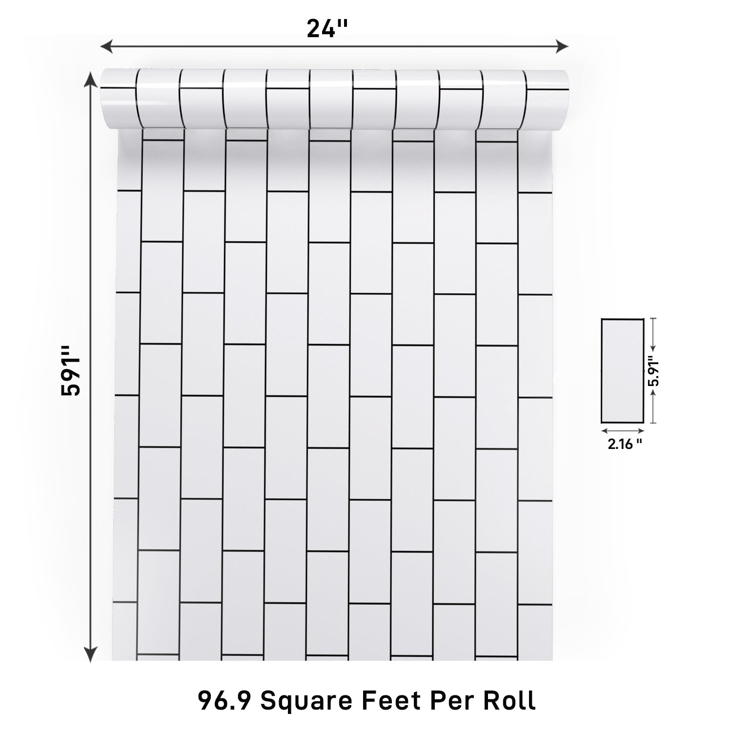 - Subway Tile Wallpaper▦Roll Size: 24 inches wide by 197 inches long, covers 32.3 square feet each vinyl film roll. Glossy finish, classic subway tile look, quick and inexpensive way to transform your space, budget friendly to renters and home owners